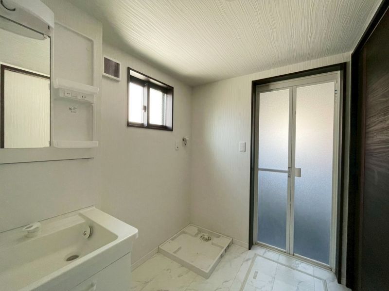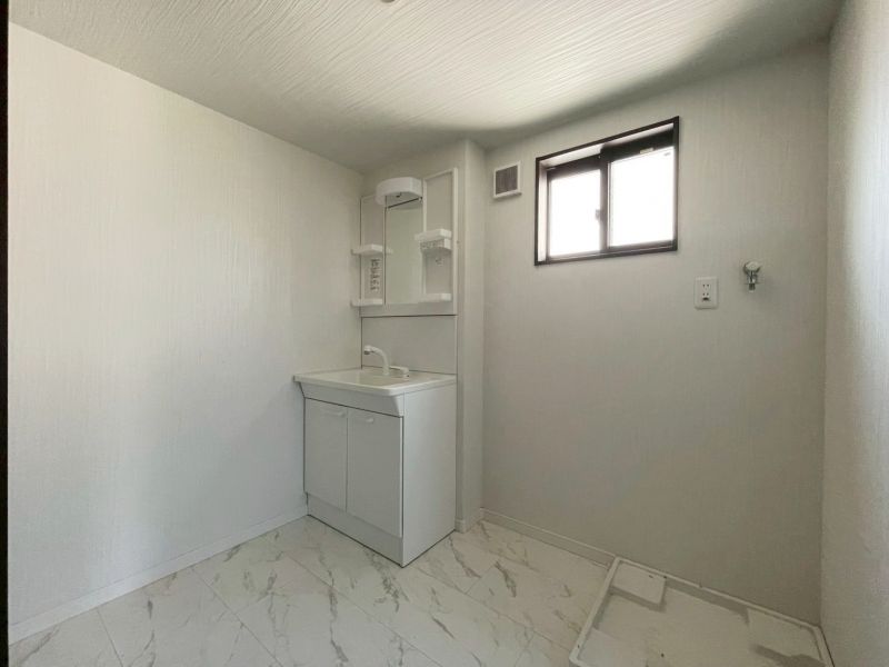 白を基調とした明るく清潔感のある洗面スペース。シンプルなデザインでどんなインテリアにもなじみ、お手入れも簡単。朝の身支度がスムーズに行える、快適な空間です。